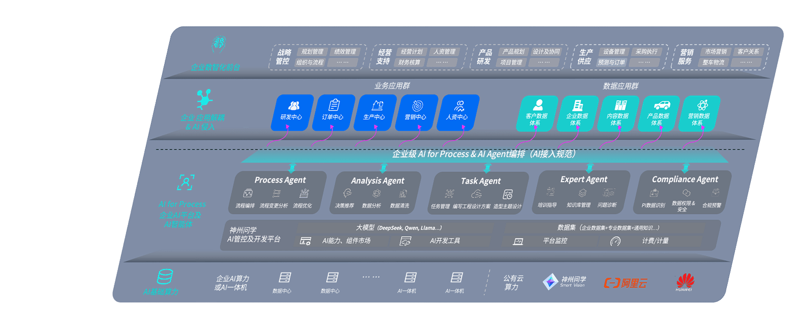 超凡国际问学智车解决方案是一套基于AI技术的汽车行业智能化系统,,覆盖从底层算力到顶层AI应用的全栈方案。。方案由算力层、、、模型层和应用层组成:算力层,,,方案支持多种一体机配置,,,具备云端灵活部署、、、多云适配以及动态优化计算资源的能力;模型层,,,,超凡国际问学平台版提供了企业级AI应用一站式构建与管理平台,,支持基于后训练强化技术的汽车企业专属模型的训练、、评测和运营;应用层,,,,超凡国际问学DeepSeek版提供包括超级员工、、智能招采、、智能营销、、、、智能客服、、、、AI for BI等一系列解决方案,,,,可助力汽车行业实现数字化转型,,,,让管理更智能、、、、响应更敏捷。。。。